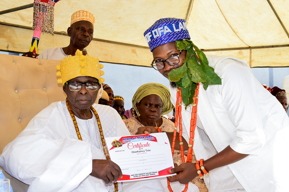 Describing the title as deeply personal, Olanrewaju said he has strong ancestral ties to the community. He explained that his great-grandfather, Ola, founded the Ayegunle Village, a neighbouring community to Ofa-Igbo. At the same time, his family town is Oje Babasale in Ibadan North-East Local Government Area.